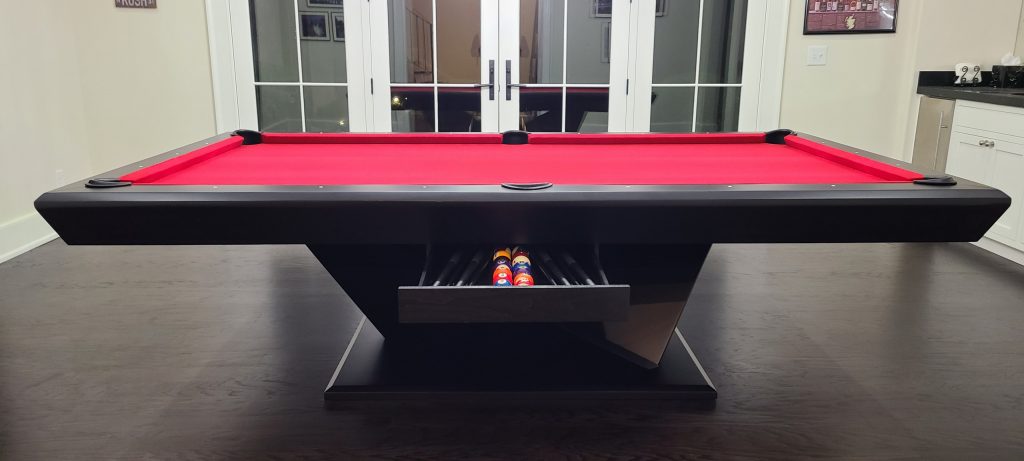 Modern Billiards MFG presents the MODERN EBONY POOL TABLE WITH DRAWER. This table is made thinking of you. With a sophisticated ebony color, a craftsmanship designed, made with the best quality wood, spacious and with an extra attribute that will surely be useful and practical, a drawer to store all the pieces of the game. The modern Ebony pool table is great to give your space a relax and fun air. Don’t waste another minute, order it now! WE PROVDE SHIPPING ANYWHERE IN THE USA DELIVERY AND WHITE GLOVE INSTALLATION ANYWHERE IN THE COUNTRY