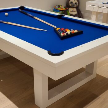 The Model Tulum White oak POOL TABLE is handcrafted to perfection and is a modern, beautifully built professional option. The Ares pool table is ideal for the Extravagant, restaurants, and casinos rich and famous.  It’s a straightforward but brilliant idea. The table also features a slim cabinet and a splash-proof wood veneer finish for a stunning appearance and improved durability. To ensure the best possible playing environment and the smooth cue ball motion, the playing area is covered with a high-quality cloth Simonis.